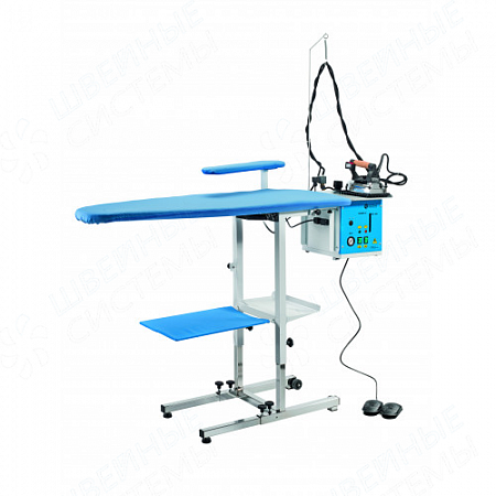 Складная прямоугольная гладильная с парогенератором из нержавеющей стали на 4,5л, с подогревом и вытяжкой.