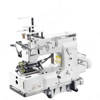 Двенадцатиигольная машина цепного стежка с плоской платформой, с заправкой эластичной нитки (резинки) в иглы для выполнения поперечных складок, с декоративным .верхним застилом, с пуллером.