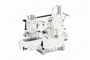 Двенадцатиигольная машина двойного цепного стежка с цилиндрической платформой для настрачивания «лампасов», с пуллером.