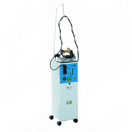 Расположен на тумбе с колесами. Оснащен краном слива для удобной прочистки и манометром Внешнее подключение утюга для удобного переключения на щетку. Время работы - 4 часов.