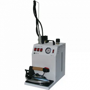 Оснащен индикатором готовности пара, индикатором отсутствия воды, регулятором температуры утюга (термостат), трубкой контроля уровня воды, манометром